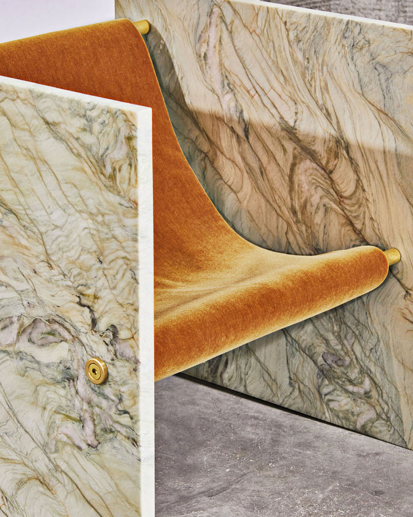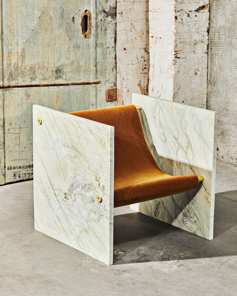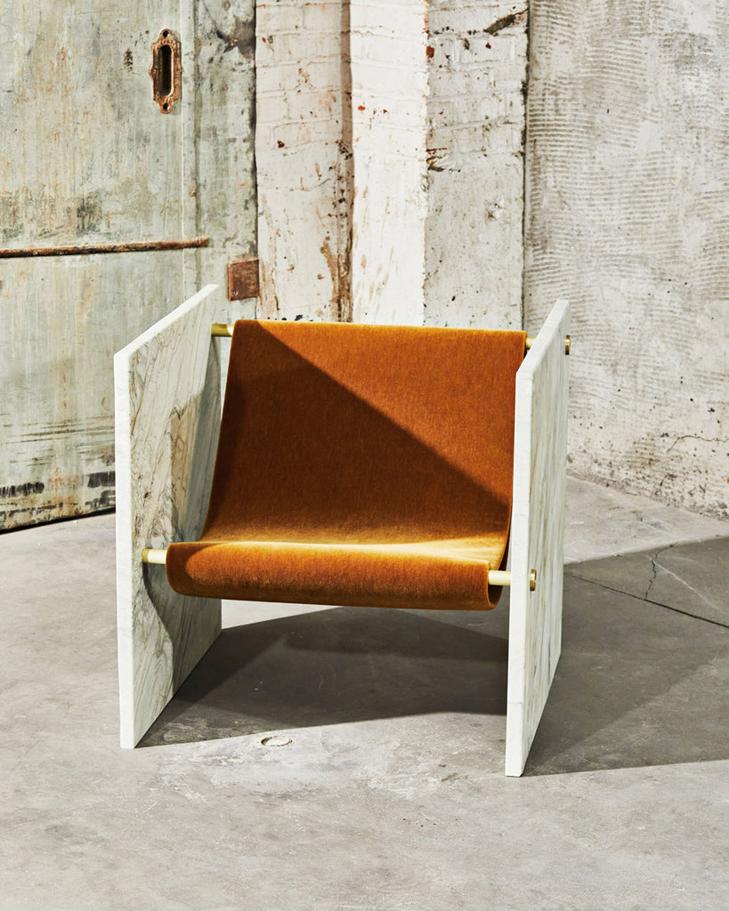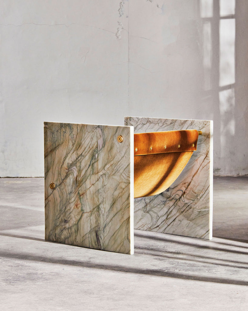 The Adri Chair is a unique take on a statement chair that brings timeless materials together in a new way. The Chair is made using two stone slabs, connected with custom hardware and elegant details to hold the seat in place. Made in New York City, the Adri Chair highlights how materials interact with one another through minimal connections and clean lines.
