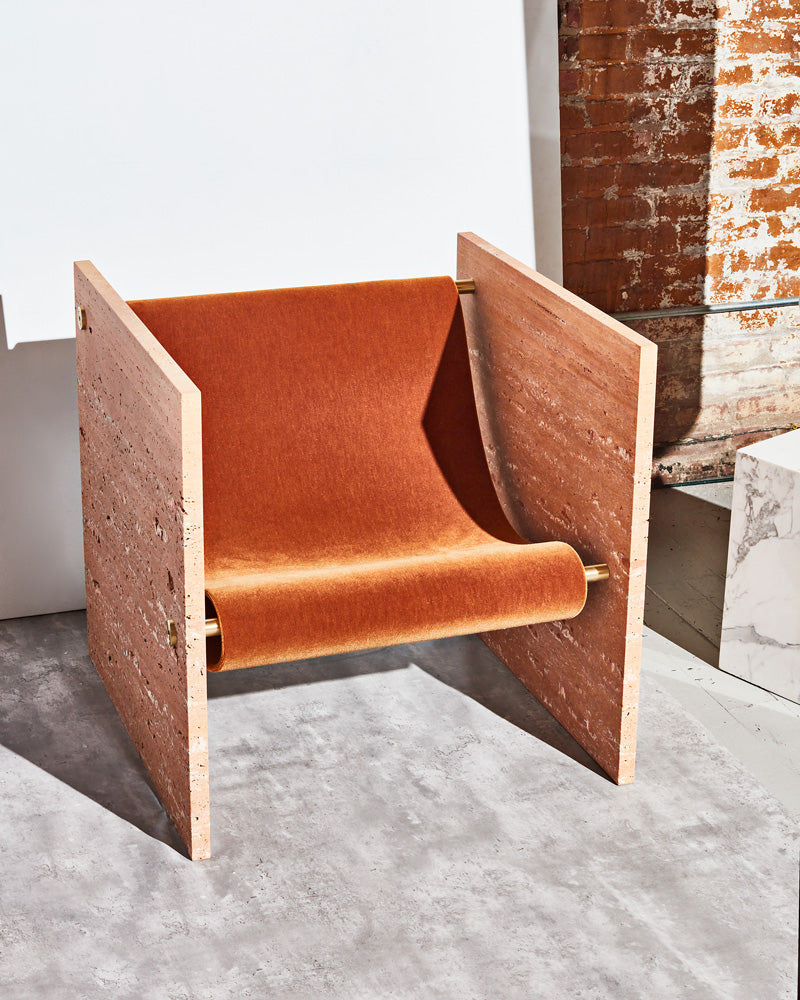 The Adri Chair is a unique take on a statement chair that brings timeless materials together in a new way. The Chair is made using two stone slabs, connected with custom hardware and elegant details to hold the seat in place. Made in New York City, the Adri Chair highlights how materials interact with one another through minimal connections and clean lines.