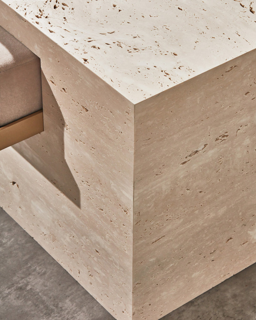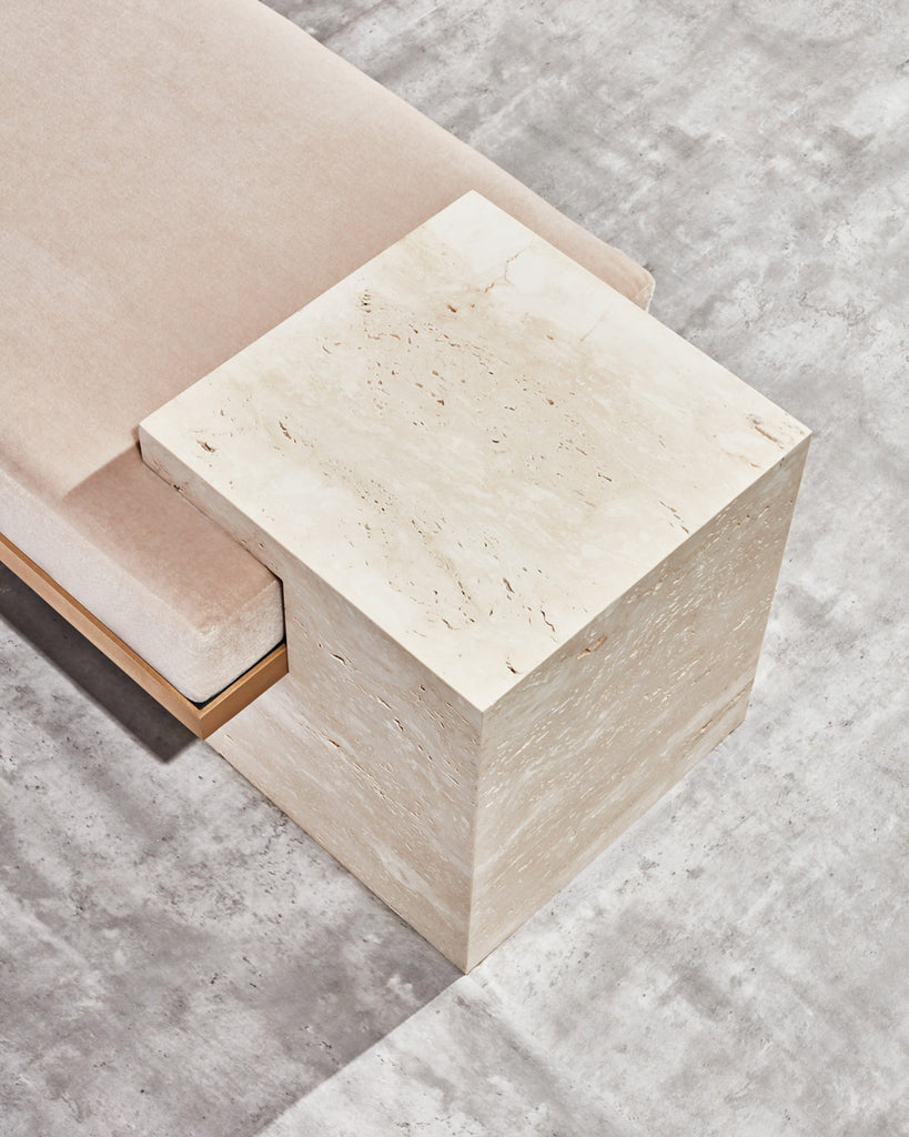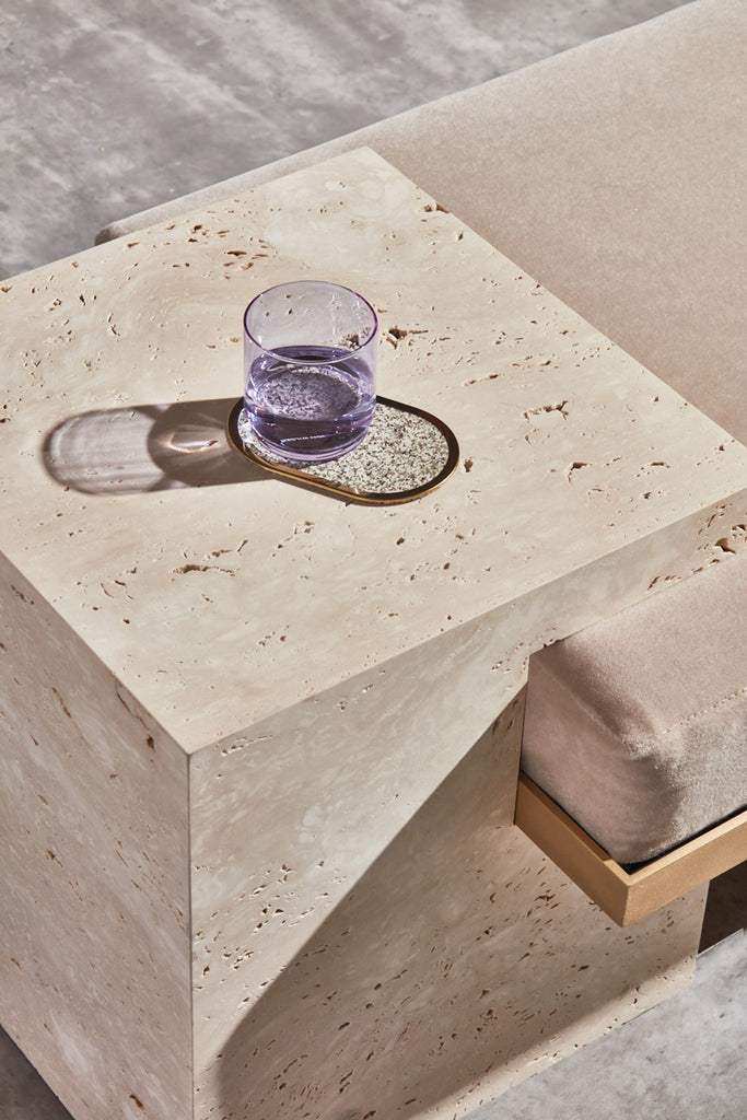The Coexist Bench uses balance and delicate harmony of materials meeting. The pieces fit together seamlessly, with the marble cubes holding up each end of the piece. There is no hardware used to hold the piece together, rather precision fitting and engineering allows for the parts to rely upon one another to exist - hence Coexist.