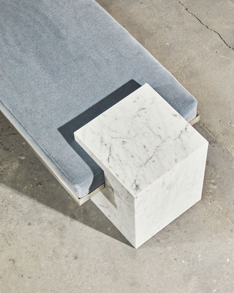 The Coexist Bench uses balance and delicate harmony of materials meeting. The pieces fit together seamlessly, with the marble cubes holding up each end of the piece. There is no hardware used to hold the piece together, rather precision fitting and engineering allows for the parts to rely upon one another to exist - hence Coexist.