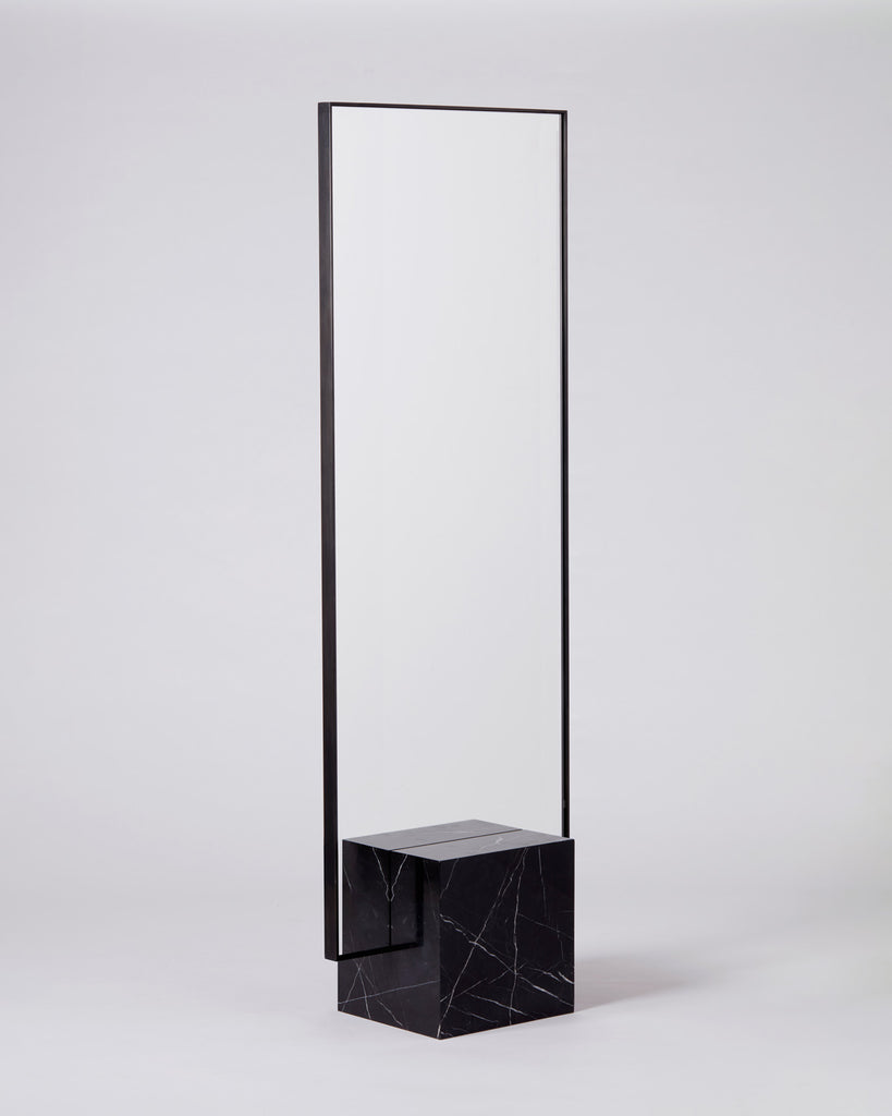 Dark Spring is a bold variant of the classic Coexist Standing Mirror with monochromatic color scheme. The mirror is able to be assembled with no hardware - just pieces fitting together like a puzzle. The back has a recycled rubber finish so that the piece can be stand-alone.
