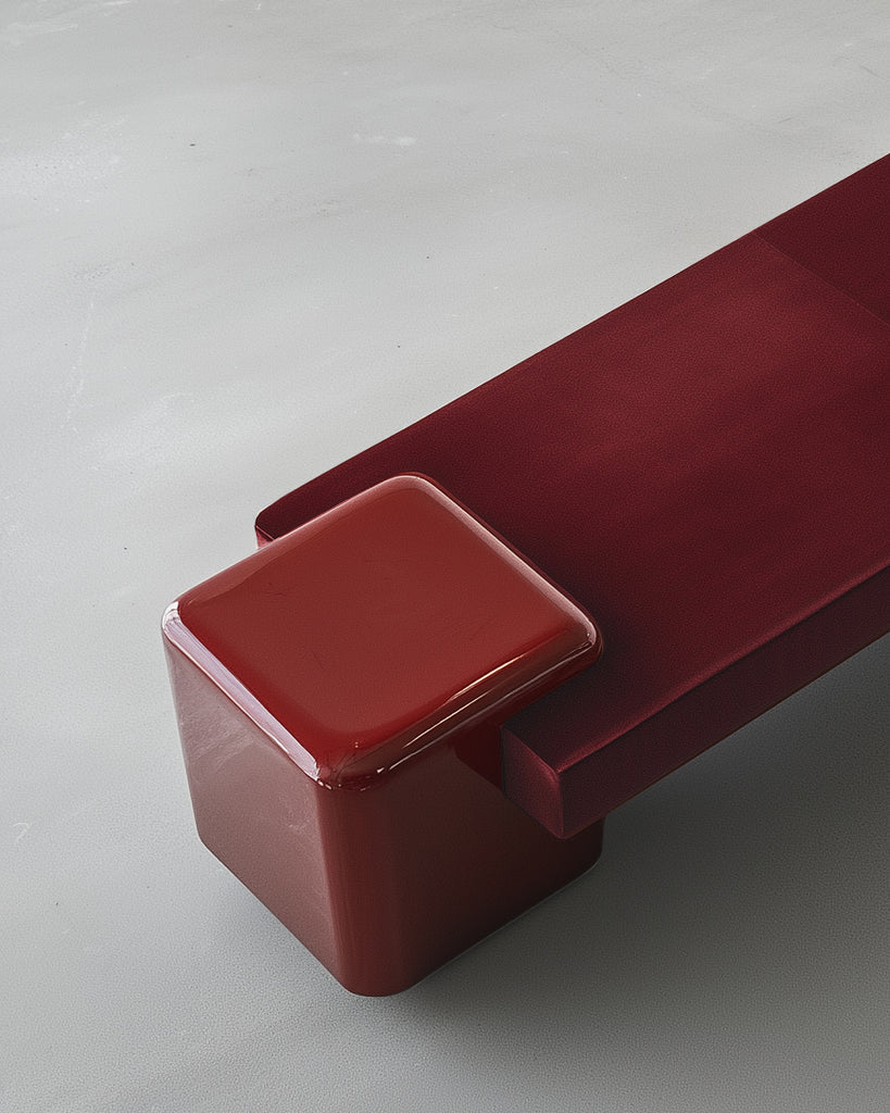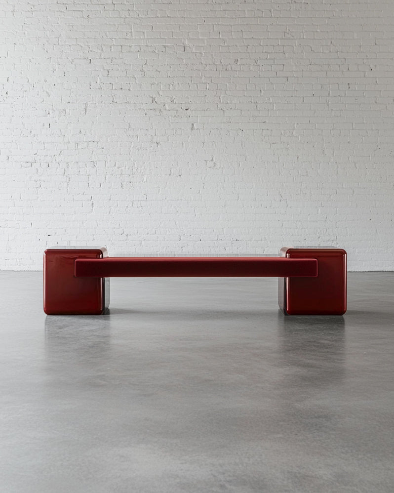 A striking interplay of form and function, the Coexist Bench Redux in oxblood lacquer embodies the seamless fusion of sculptural purity and architectural precision. The deep oxblood lacquer lends an opulent richness to its surface, enhancing the material's depth and reflective sheen. Designed to command attention in any space, the Coexist Bench Redux is not just an object of rest but an emblem of contemporary refinement.