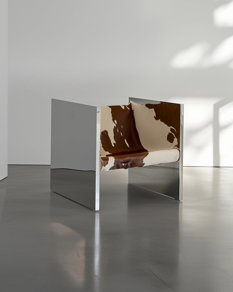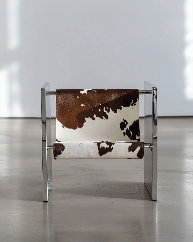 The Adri Chair is a unique take on a statement chair that brings timeless materials together in a new way. The Chair is made using two polished stainless steel arms, connected with custom hardware and elegant details to hold the seat in place. The Adri Chair highlights how materials interact with one another through minimal connections and clean lines.